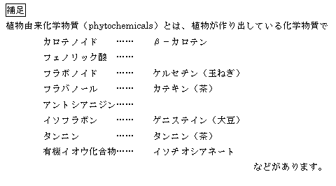 この様なバランスのとれた、自然の組み合わせな植物由来化学物質が果物や野菜に含まれており、けっして錠剤などサプリメントでは、まねができないのです。
